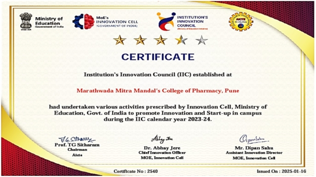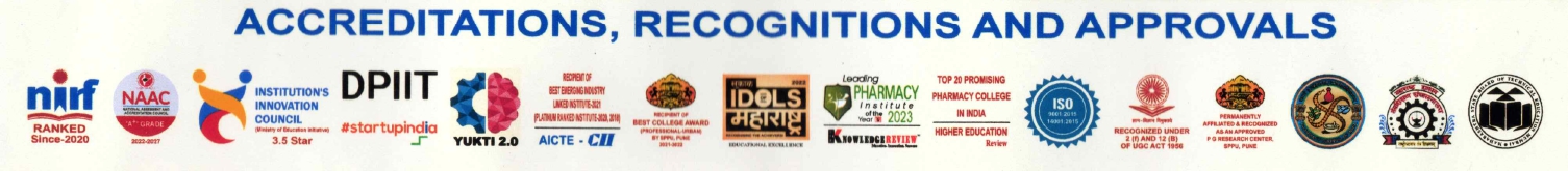 With the incessant expansion of Pharmacy profession, the demand for competent and proficient pharmacists is on climb. It was with this aim of imparting excellent & comprehensive education to blossoming pharmacists; Marathwada Mitra Mandal’s College of Pharmacy (MMCOP) was established in 2006. MMCOP is an institution run by Marathwada Mitra Mandal, Pune, a Public Charitable Trust established way back in 1967, by Hon’ble Late Shri. Shankarraoji Chavan, Ex. Home Minister, Govt. of India. Trust has a meritorious record of running different professional institutions at its various educational complexes; offering excellent education to about 15,000 students. MMCOP has well expert and knowledgeable teaching staff steered by the Principal Dr. Manohar J. Patil, a renowned personality in the field. The Institution has excellent educational environment along with best infra-structural facilities. Unique feature of MMCOP is its emphasis on one-to-one Student- Teacher Interaction, helping the students to build their confidence and enhance their subject understanding. MMCOP is approved by Pharmacy Council of India, New Delhi, Recognized by Govt. of Maharashtra, Directorate of Technical Education, Mumbai (MS), Permanently Affiliated to Savitribai Phule Pune University, Pune., Maharashtra State Board of Technical Education, Mumbai (MS), Recognized as an Approved PG Research Center (Ph.D). With integrity and perseverance we have raised our standards and the end result are the endorsement to it. MMCOP is Recognized under Section 2 (f) & 12 (B) of the UGC Act, 1956. Accredited by NBA (B. Pharm – July - 2014 to June - 2022 ) & NAAC with A+ Grade. Ranked in NIRF India Ranking since 2020, MHRD Govt. of India. 3.5 Star Rated Institute by Institute Innovation Council (MoE). Start-up (Medzin Healthtech. Pvt. Ltd) Funded Institute by Yukti 2.0. Recipient of Best Emerging Industry Linked Institute by AICTE-CII-2021 & A Platinum Ranked Institute in AICTE CII 2018. Recipient of Pharma Anveshan- 2023 Award. The college has received “Best College Award-2021" (Professional- Urban) by Savitribai Phule Pune University, Pune and Certificate of Recognition as Best College Award (Idols of Maharashtra, Educational Excellence – 2022) by Sakal Media Group. Recognised as Leading Pharmacy Institute of The Year - 2023 by The Knowledge Review. The college has been awarded by Indus Foundation for Educational Excellence and Recognized as Top 20 Promising Pharmacy Colleges in India -2018 by Higher Education Review Magazine, A certified – ISO 9001-2015, ISO 14001-2015 institute.